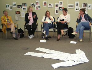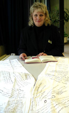 Kettnaker für ihre zugesandten Beiträge für den "a performancelife - 'Jede Neunte'"-Anzug. Zum Gedächtnis an drei besondere Frauen wählte Gudrun Kemper für das Kunstprojekt "a performancelife" Zitate aus den Geschichten von Petra Soltanpoor, Geena, Coci & Mona aus und schrieb sie auf den Anzug von "Jede 9.te". |